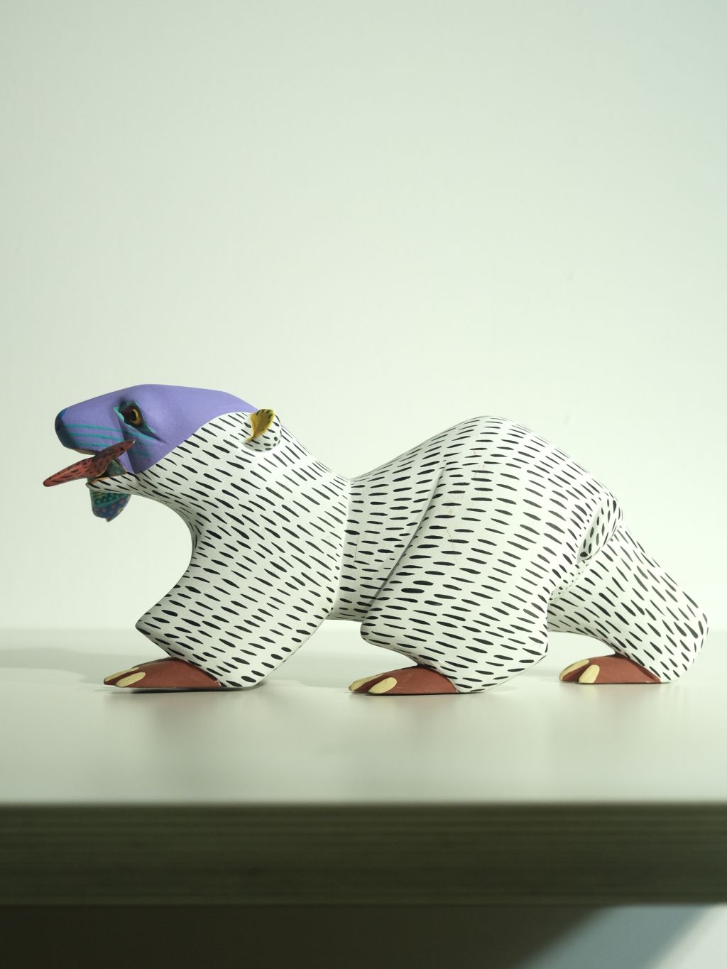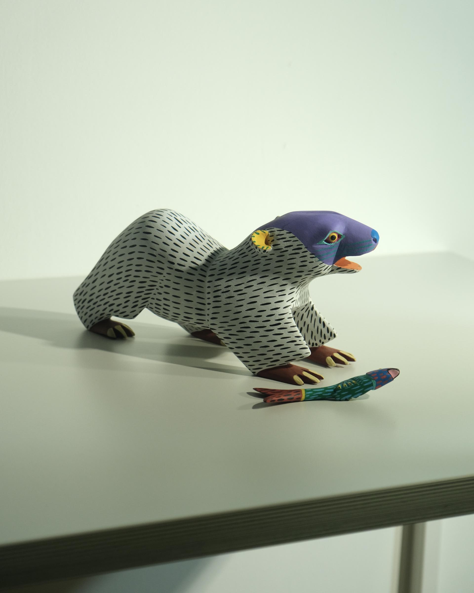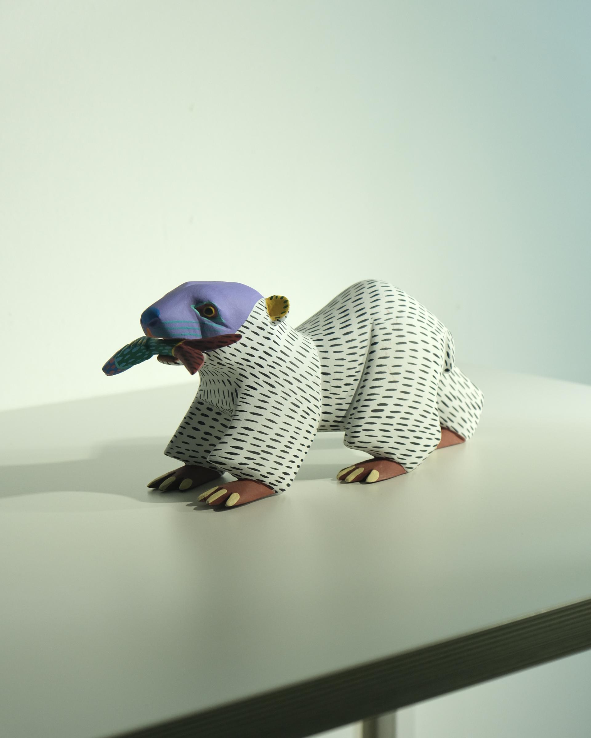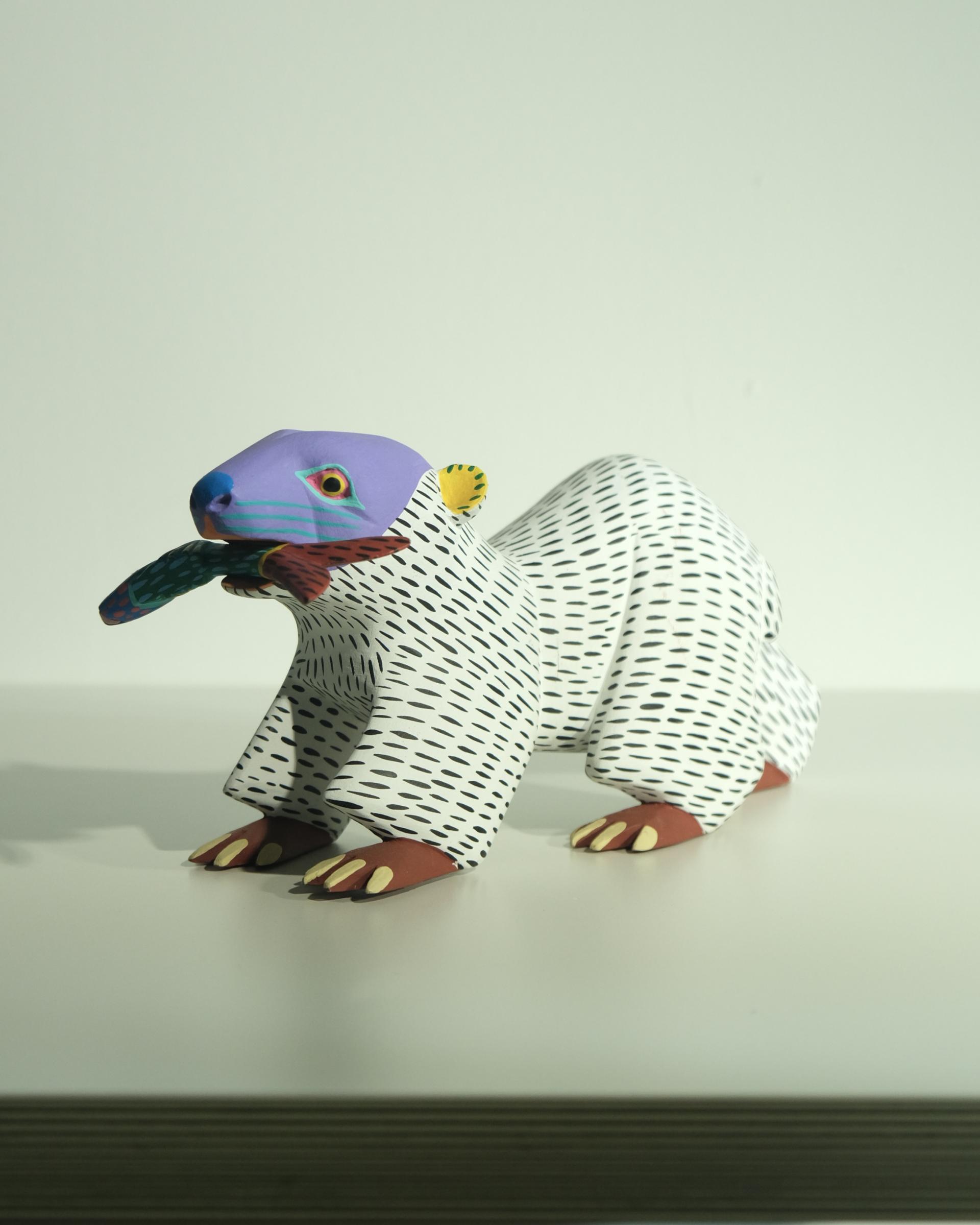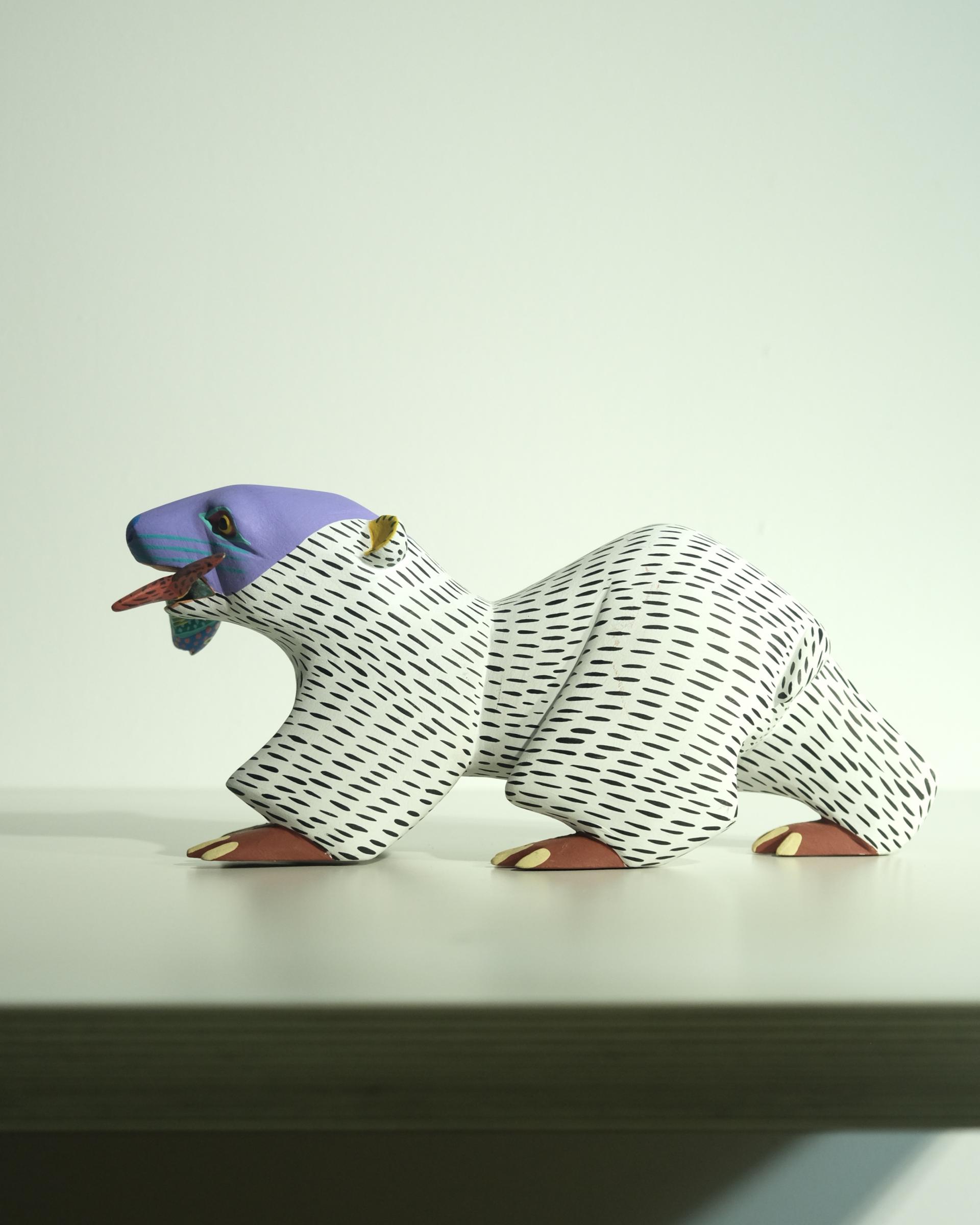 귀엽게 물고기를 물고 있는 북금곰 우드카빙 작품은 멕시코 남부 OAXACA의 조각가 Armando Jimenez의 작품입니다.