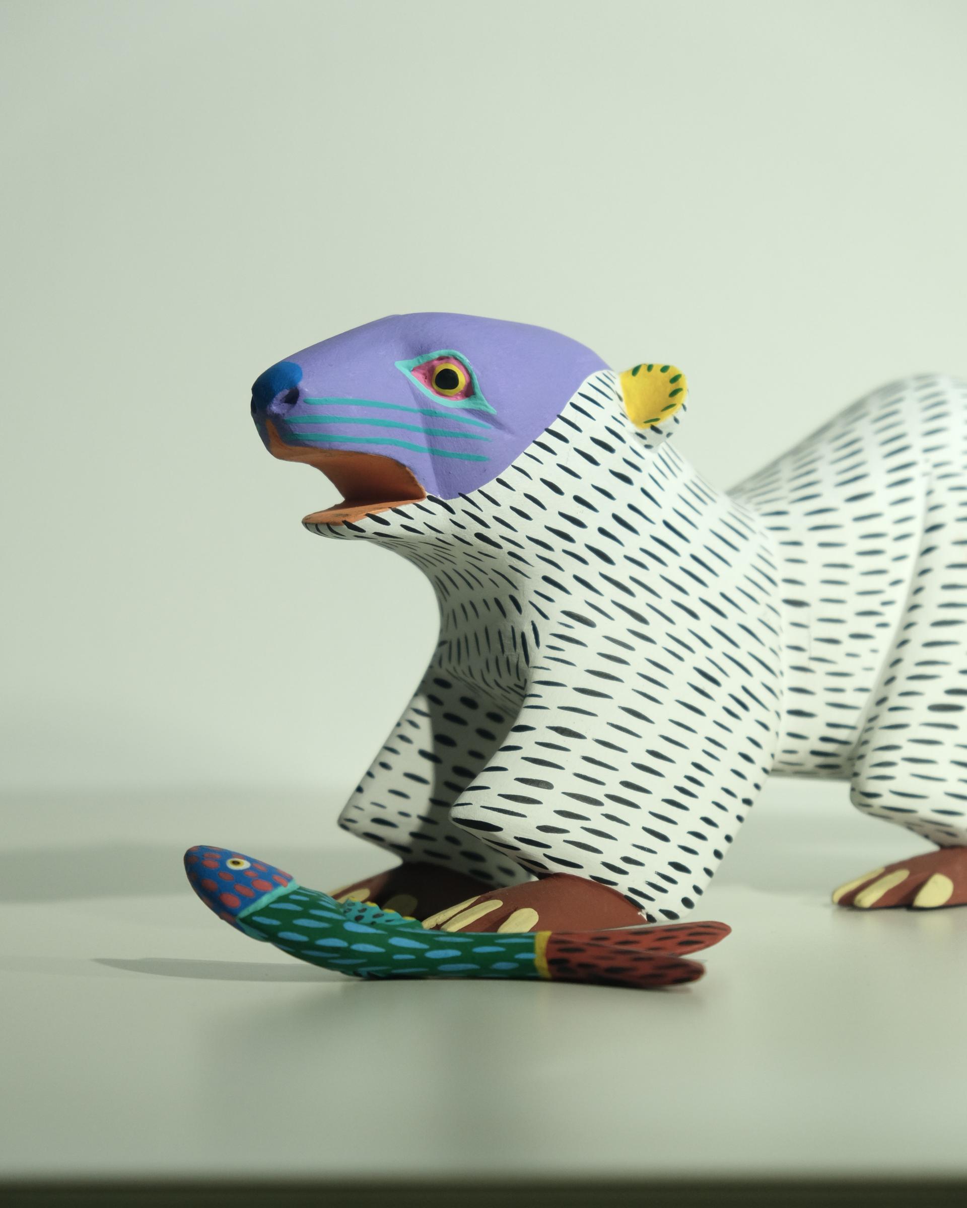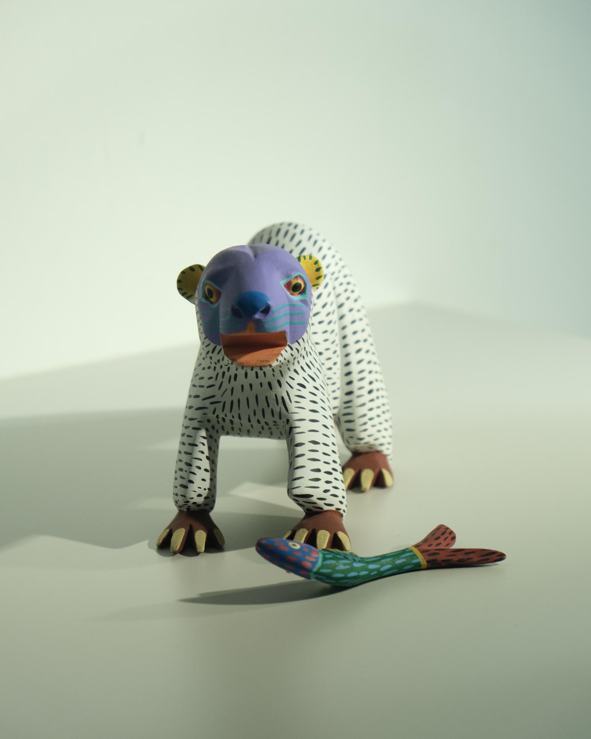치타를 조각한 작품으로 멕시코산 코펄나무를 마체테와 조각칼 을 사용해 조각하고 다채로운 색상칠로 작품을 완성하였습니다.