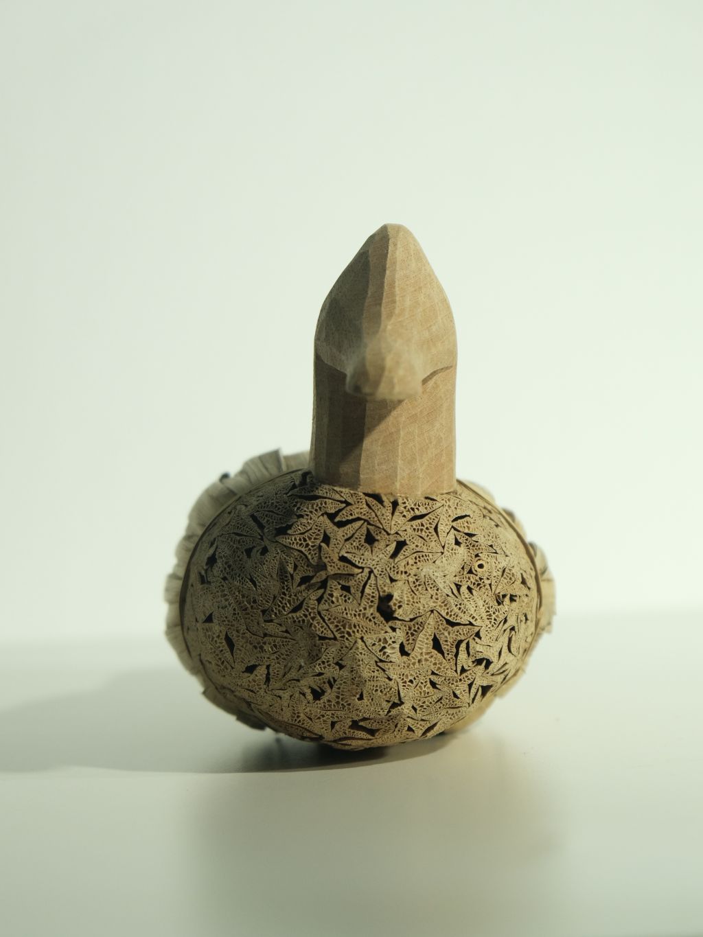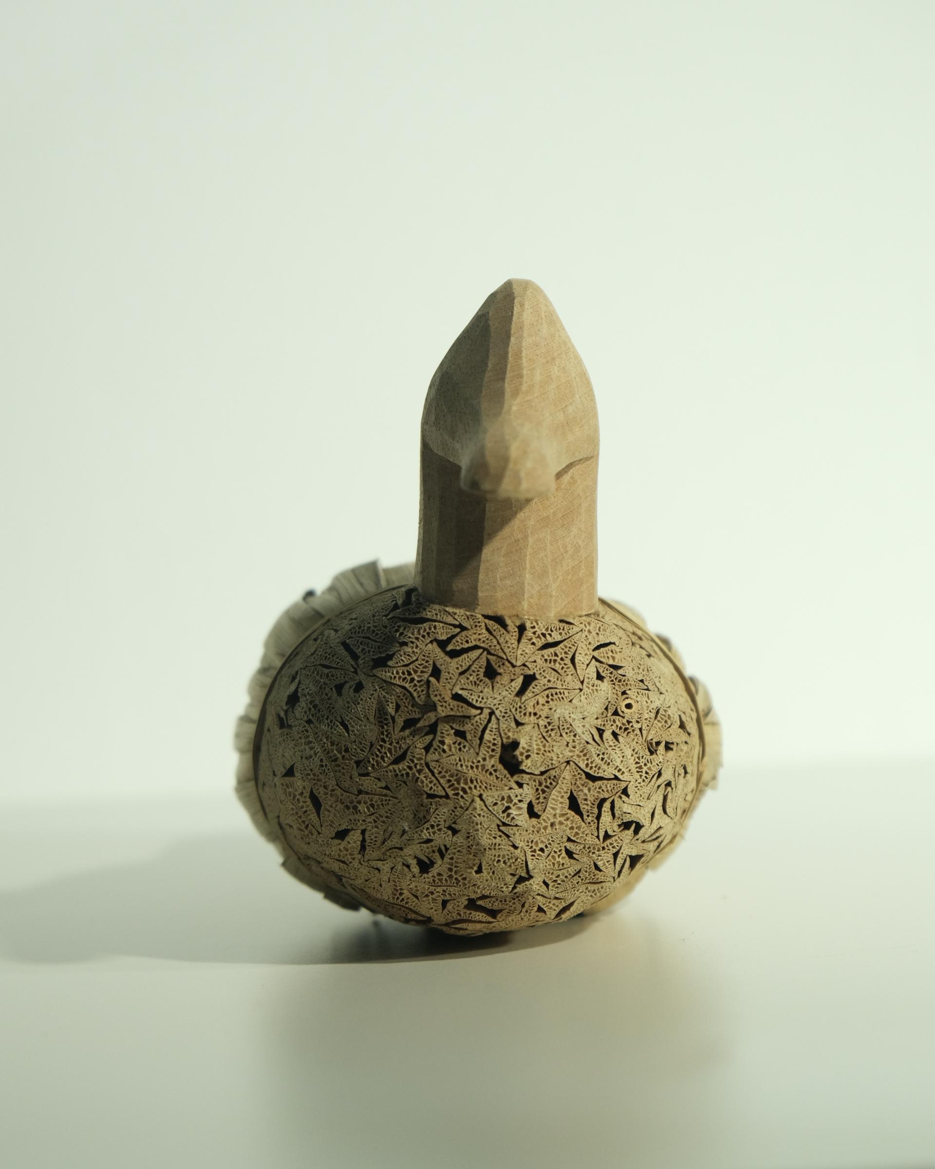 머리와 목은 단단한 원목으로 조각되어 있으며,
