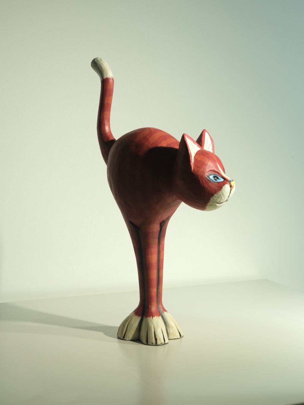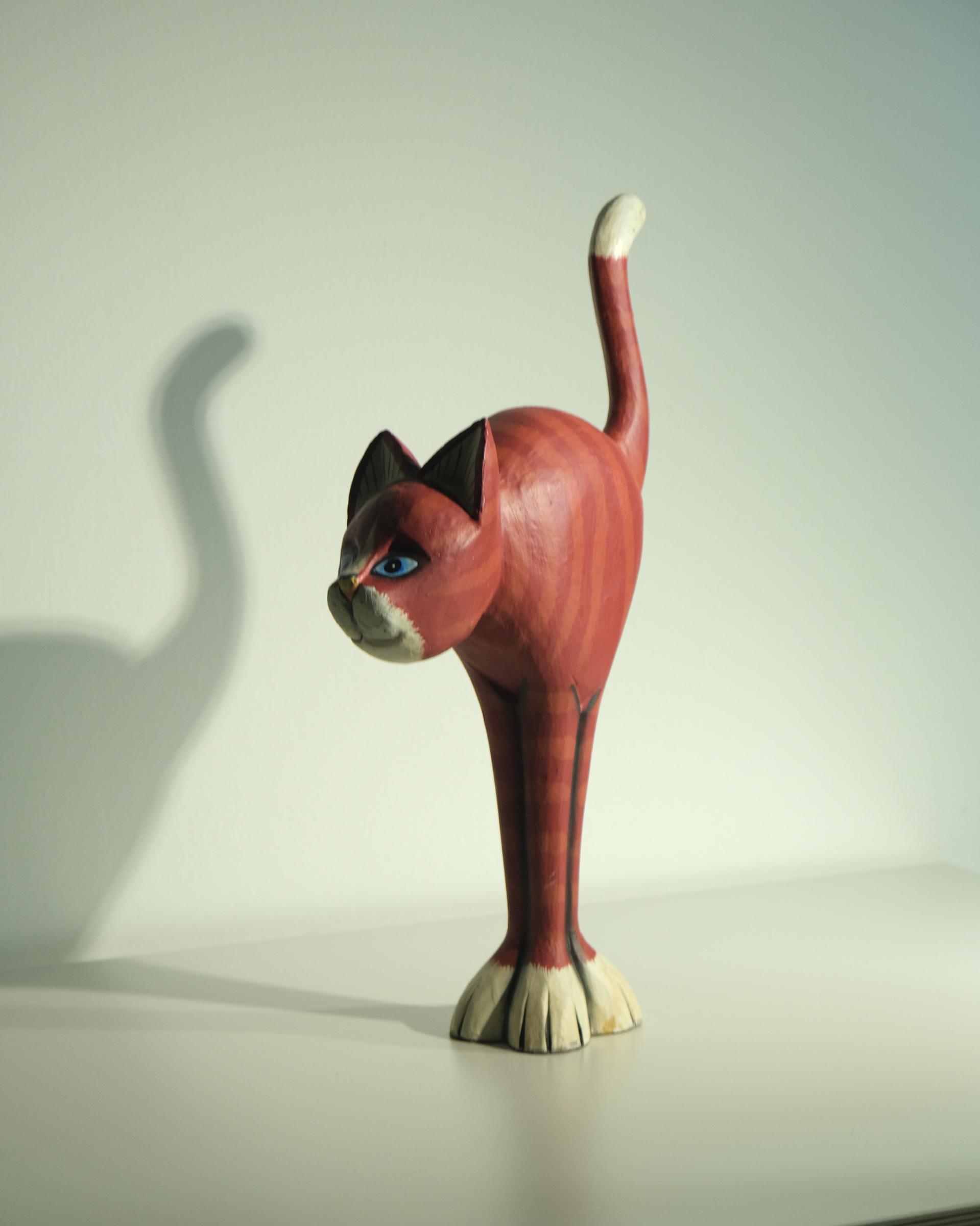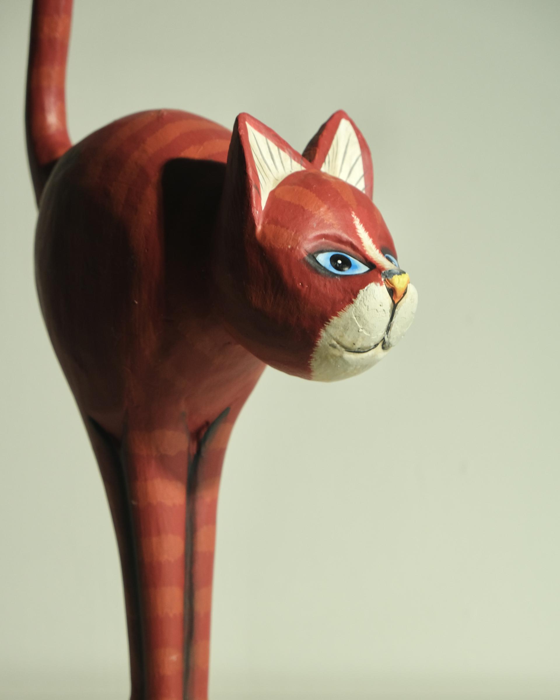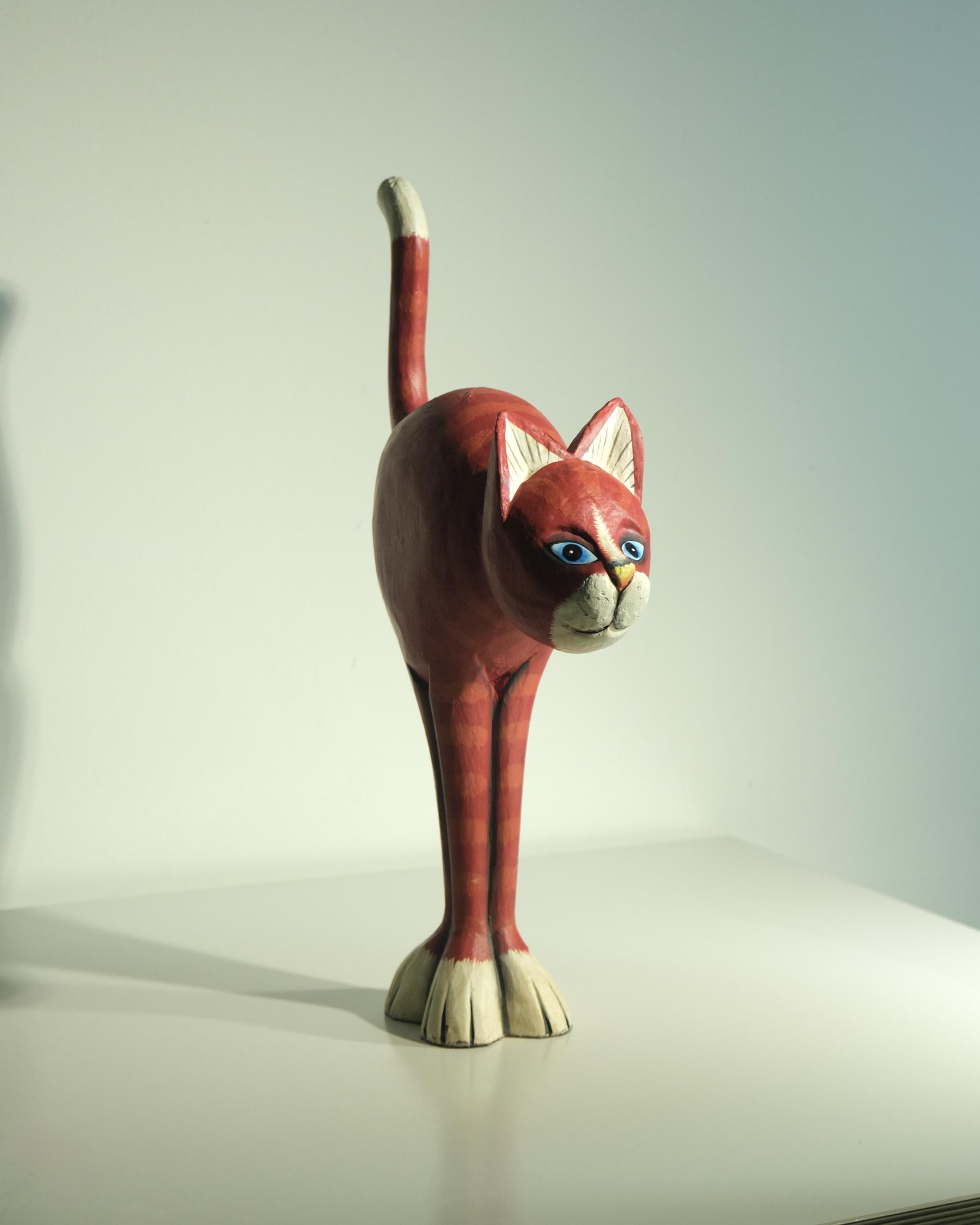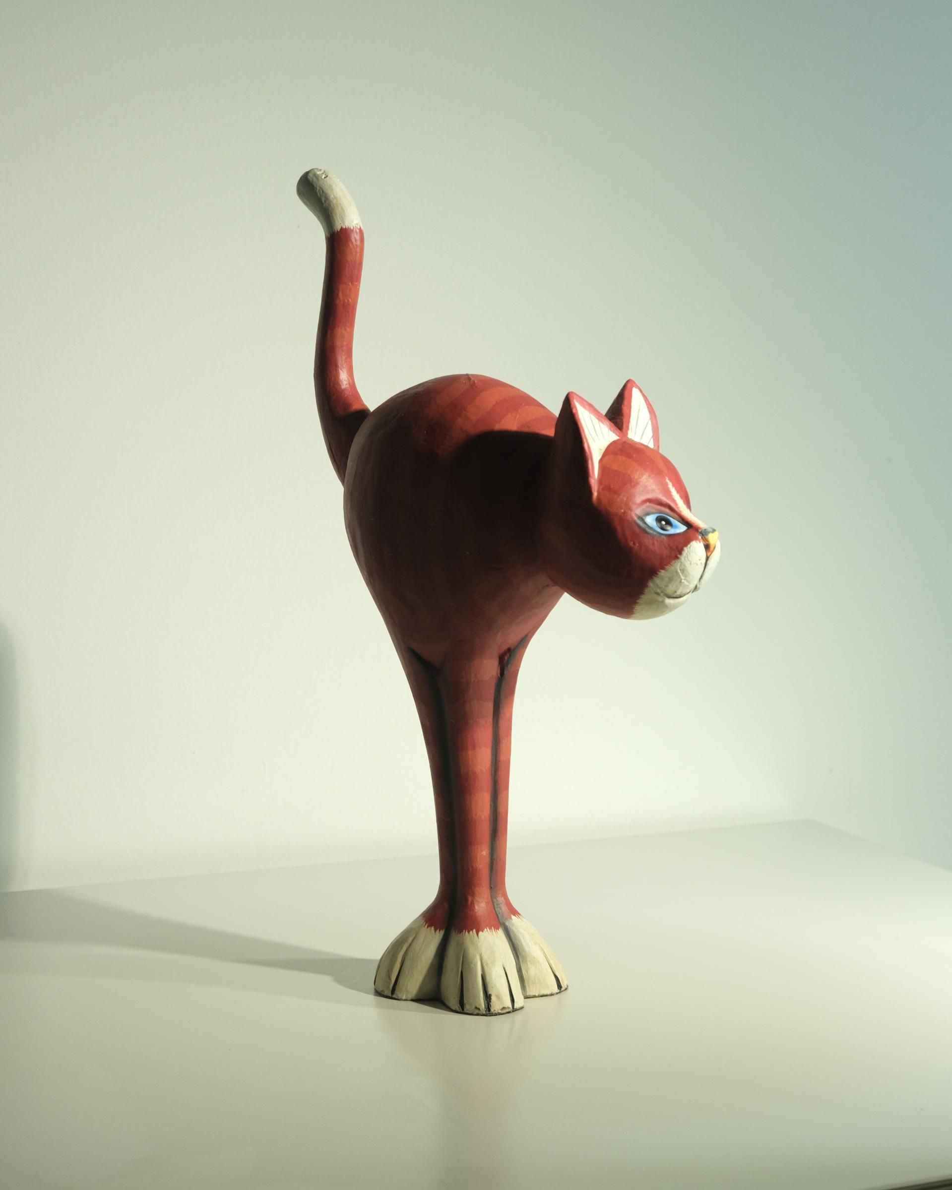 1980년대에 제작된 핸드카빙 우드 캣 피규어입니다.