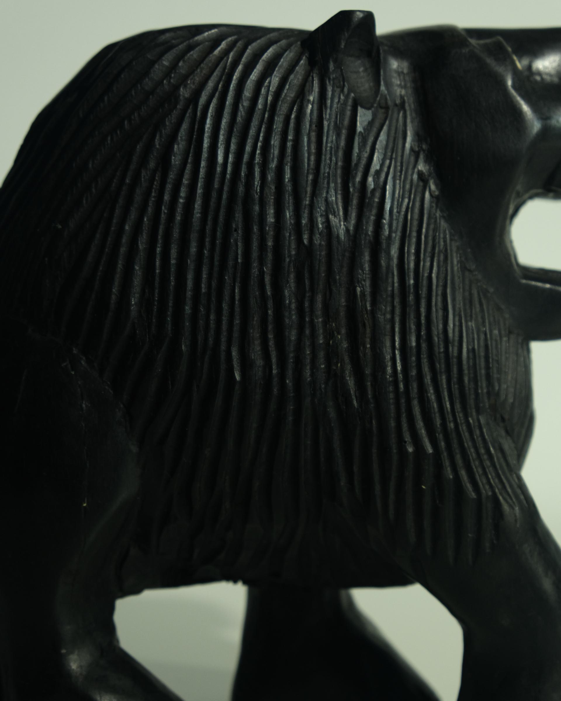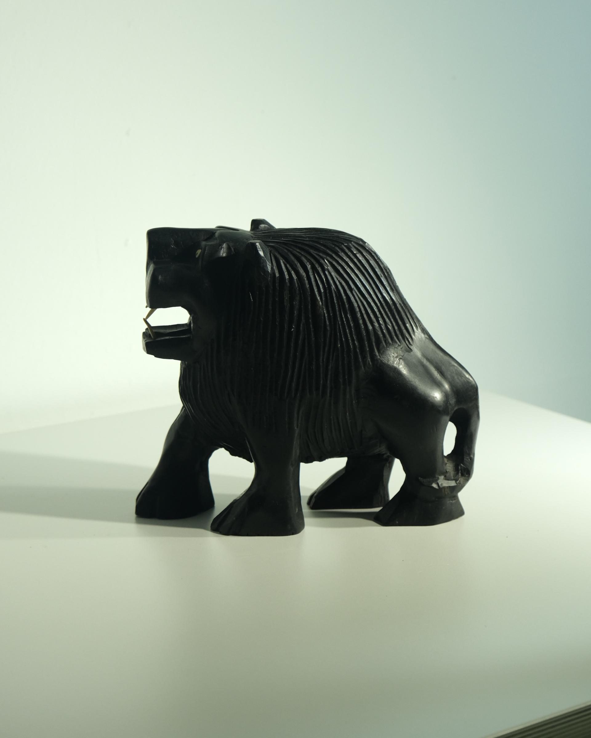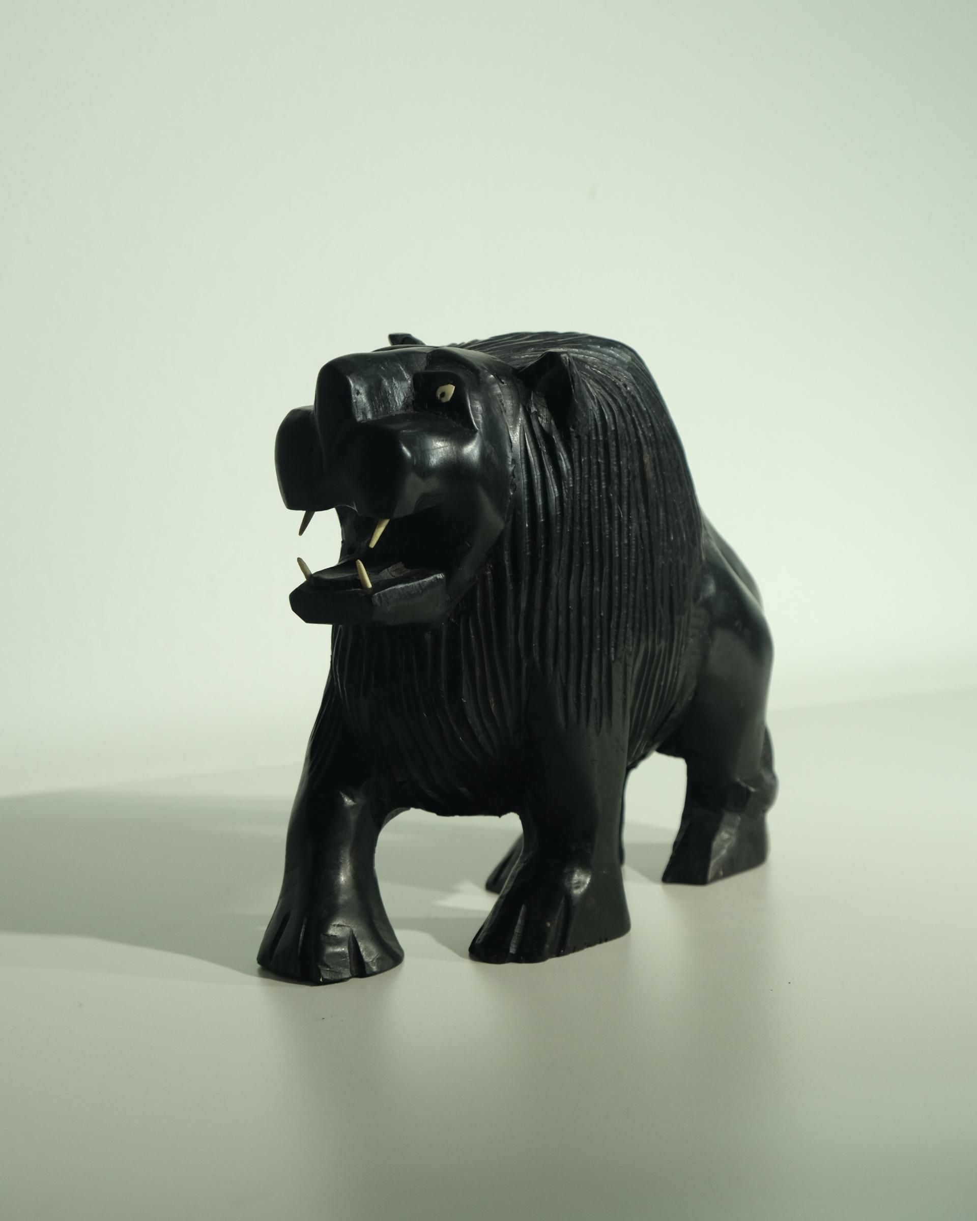 케냐에서 제작된 흑단 목재 사자 조각상입니다.